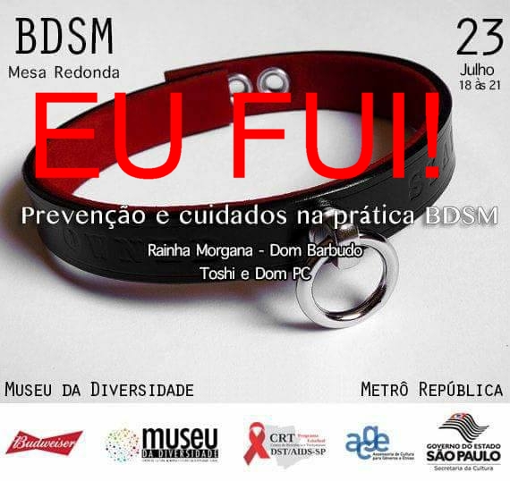 Um novo encontro no Museu da Diversidade para discutirmos em mesa redonda, as práticas do BDSM, a prevenção e cuidados.